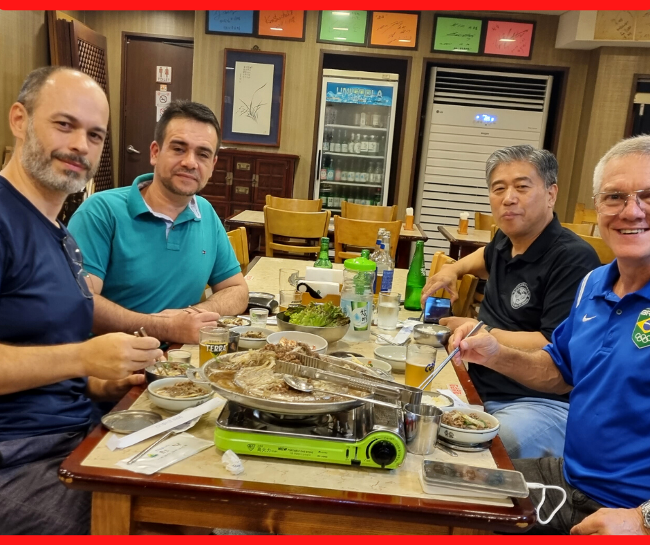No mês de julho de 2023, dois mestres da cidade de São José/SC, Alexandre Coelho dos Santos e Alexsandro Albano Benitz, ambos da Escola Handoryu, localizada no bairro Kobrasol, e mais 4 mestres de outros estados brasileiros: Jefferson Machado (PR), Paulo Cesar dos Santos Silva (SE), Marcus Pereira de Rezende (RJ), Rafael Nicolau (SP), Claudio Rodrigues Junior (SP) e Leandro Ueno (que reside no Japão), embarcaram em uma emocionante jornada em busca de aprimoramento profissional e conhecimento internacional. O destino dessa aventura educacional foi a Coreia do Sul, terra natal do Taekwondo.